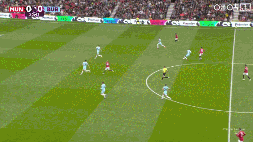 上半场伤停补时8分钟,第45+5分钟,曼联反击机会,齐尔克泽斜传,前场二打一,姆伯莫选择了传球,阿玛德面对空门的射门推射打飞了。↓